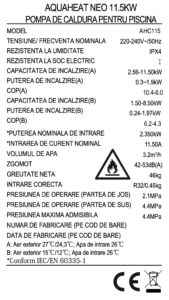 Stare de performanță (Aer 27 ℃ / Apă 26 ℃ / Umid. 80%)